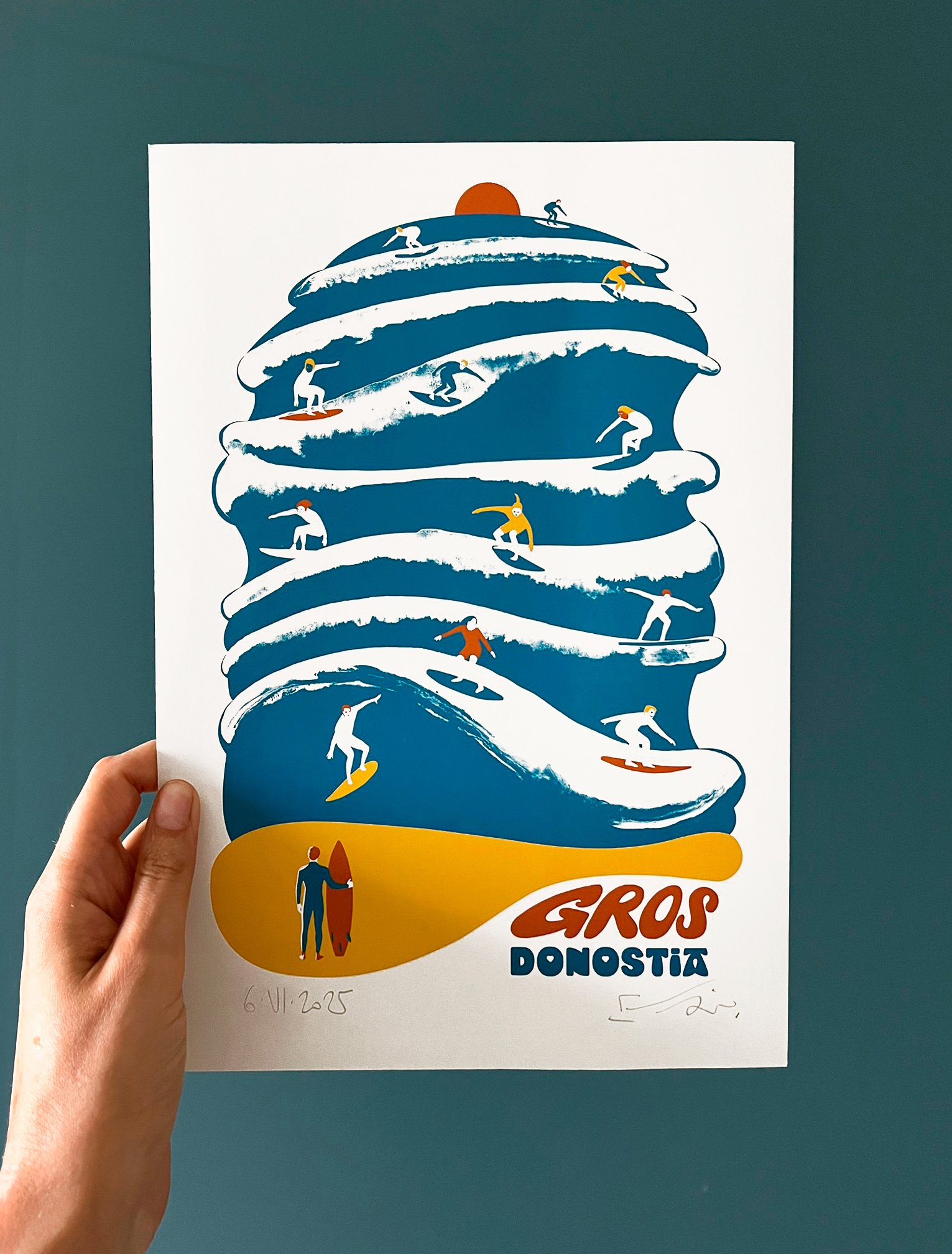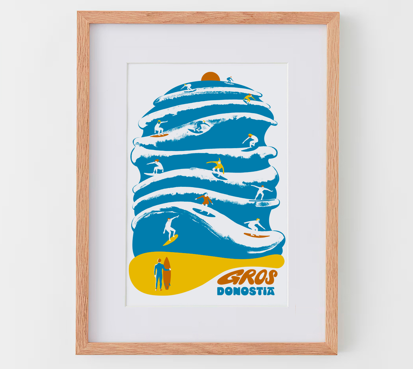 Grosurf no es solo surfear. Es dejarse llevar por el mar en un lugar donde las olas tienen carácter y el barrio tiene alma. Es conectar con el agua, con uno mismo, con el momento. Grosurf es más que una palabra: es una forma de estar presente, allí donde el Cantábrico se encuentra con Gros.
