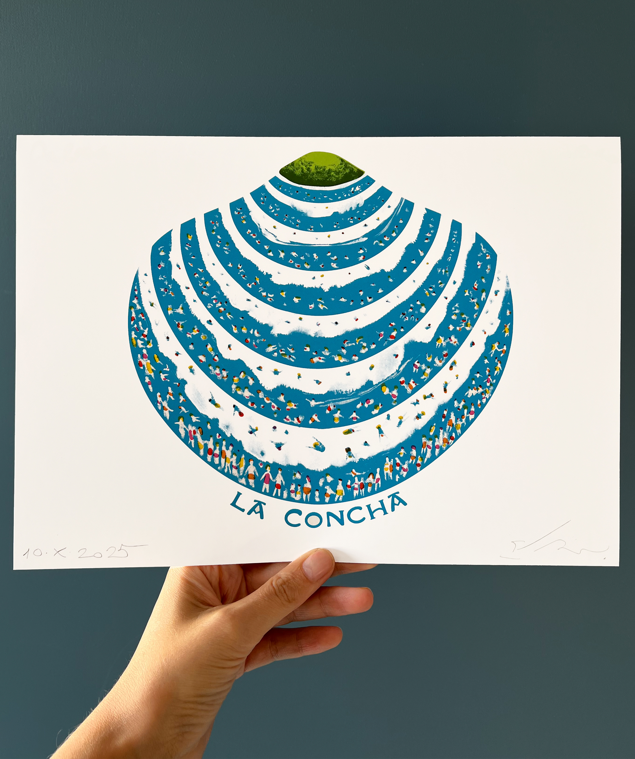 Las vetas de la concha son olas y los puntos oscuros sus bañistas. Una concha con forma de Playa de la Concha. Si estás en Donosti puedes adquirirla en la tienda de láminas Nor-Nai, desde el resto del mundo por aquí.