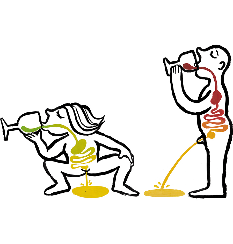 Para enólogos aficionados, gente achispada y una posible conversación sobre los misterios del aparato digestivo y los riñones: Vino Blanco y Vino Tinto.